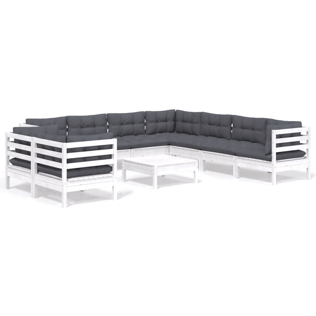 vidaXL 10-tlg. Garten-Lounge-Set mit Kissen Weiß Massivholz Kiefer