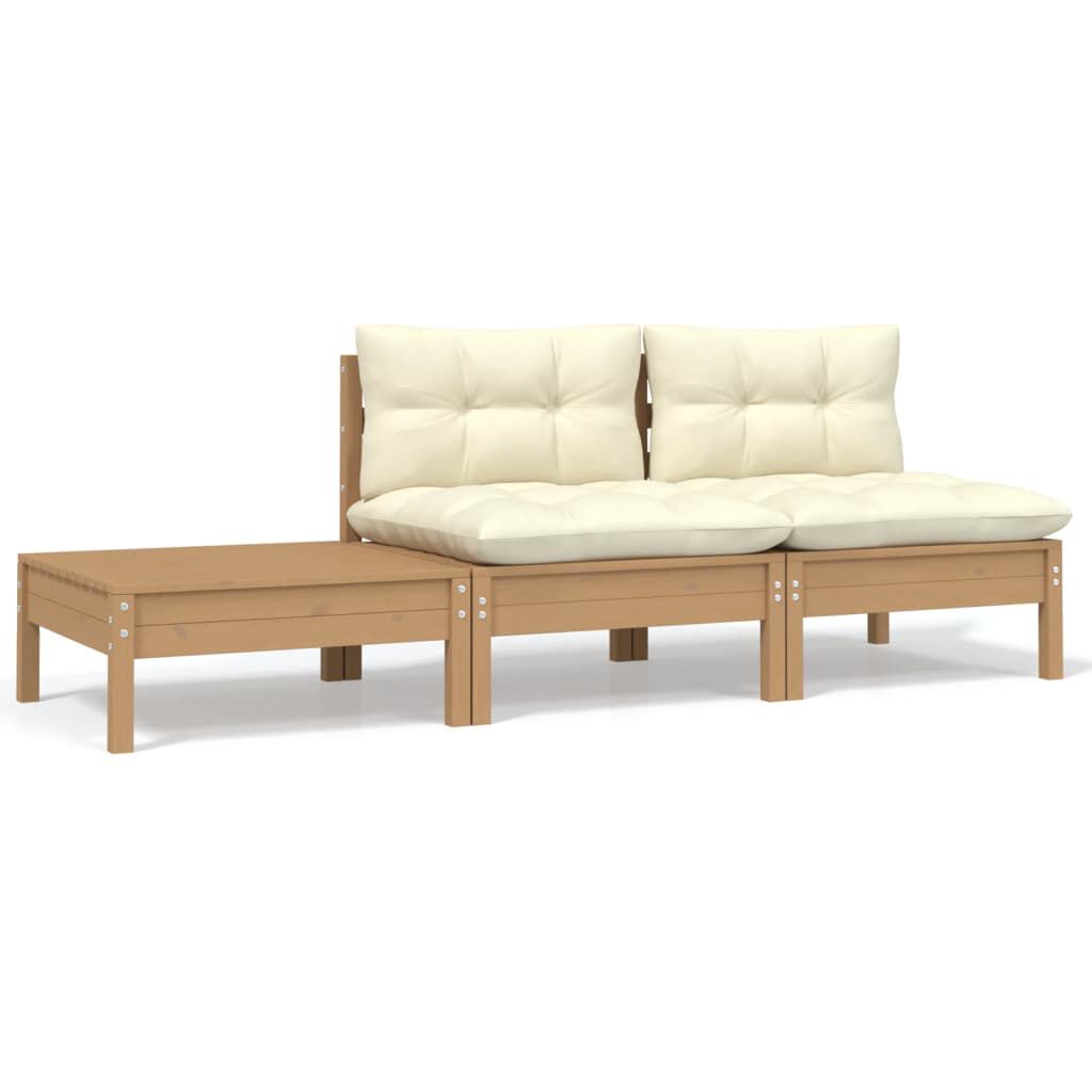 vidaXL 3-tlg. Garten-Lounge-Set mit Creme Kissen Massivholz Kiefer