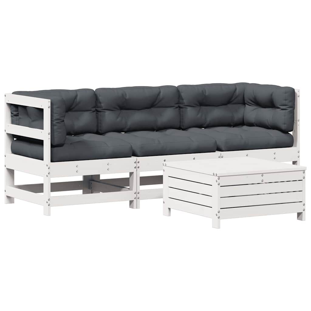 vidaXL 4-tlg. Garten-Lounge-Set mit Kissen Weiß Massivholz Kiefer