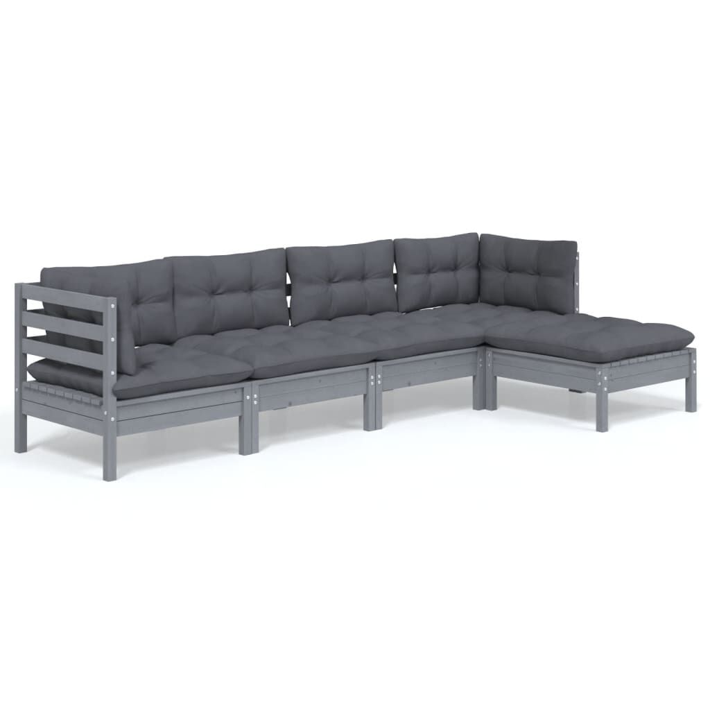 vidaXL 5-tlg. Garten-Lounge-Set mit Kissen Grau Kiefernholz