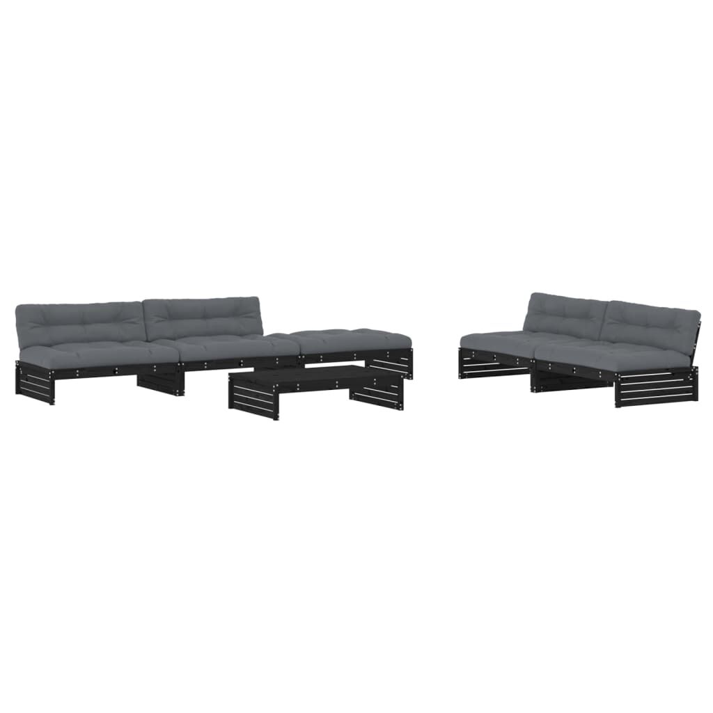 vidaXL 6-tlg. Garten-Lounge-Set mit Kissen Schwarz Massivholz