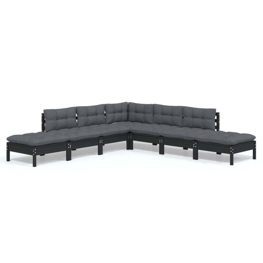 vidaXL 7-tlg. Garten-Lounge-Set mit Kissen Schwarz Kiefernholz