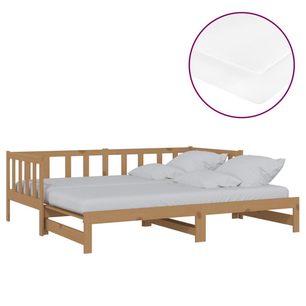 vidaXL Ausziehbares Tagesbett 2x(90x200) Honigbraun Massivholz Kiefer