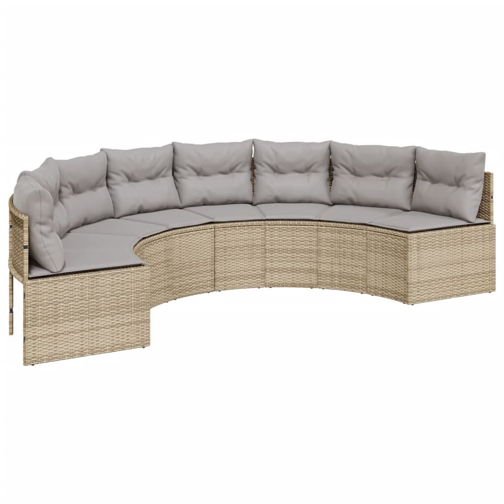 vidaXL Gartensofa mit Kissen Halbrund Beige Poly-Rattan