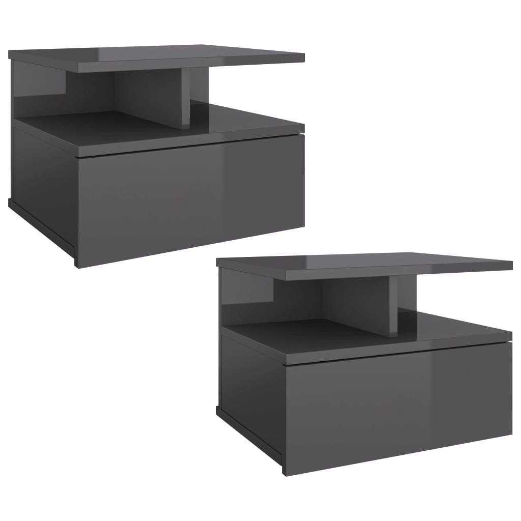 vidaXL Hängende Nachttische 2 Stk. Hochglanz-Grau 40x31x27 cm
