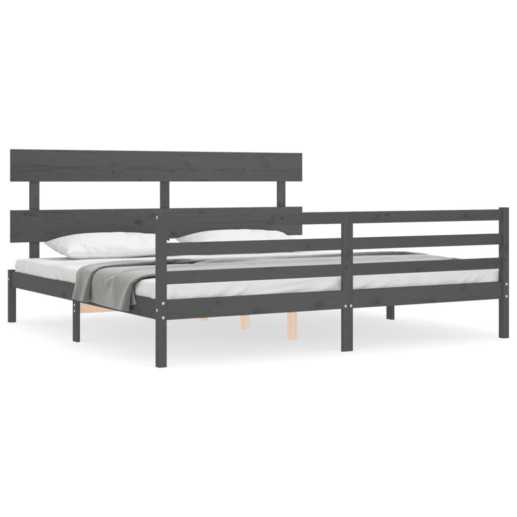 vidaXL Massivholzbett mit Kopfteil Grau 200x200 cm