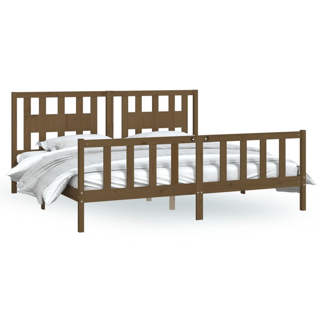 vidaXL Massivholzbett mit Kopfteil Honigbraun Kiefer 200x200 cm