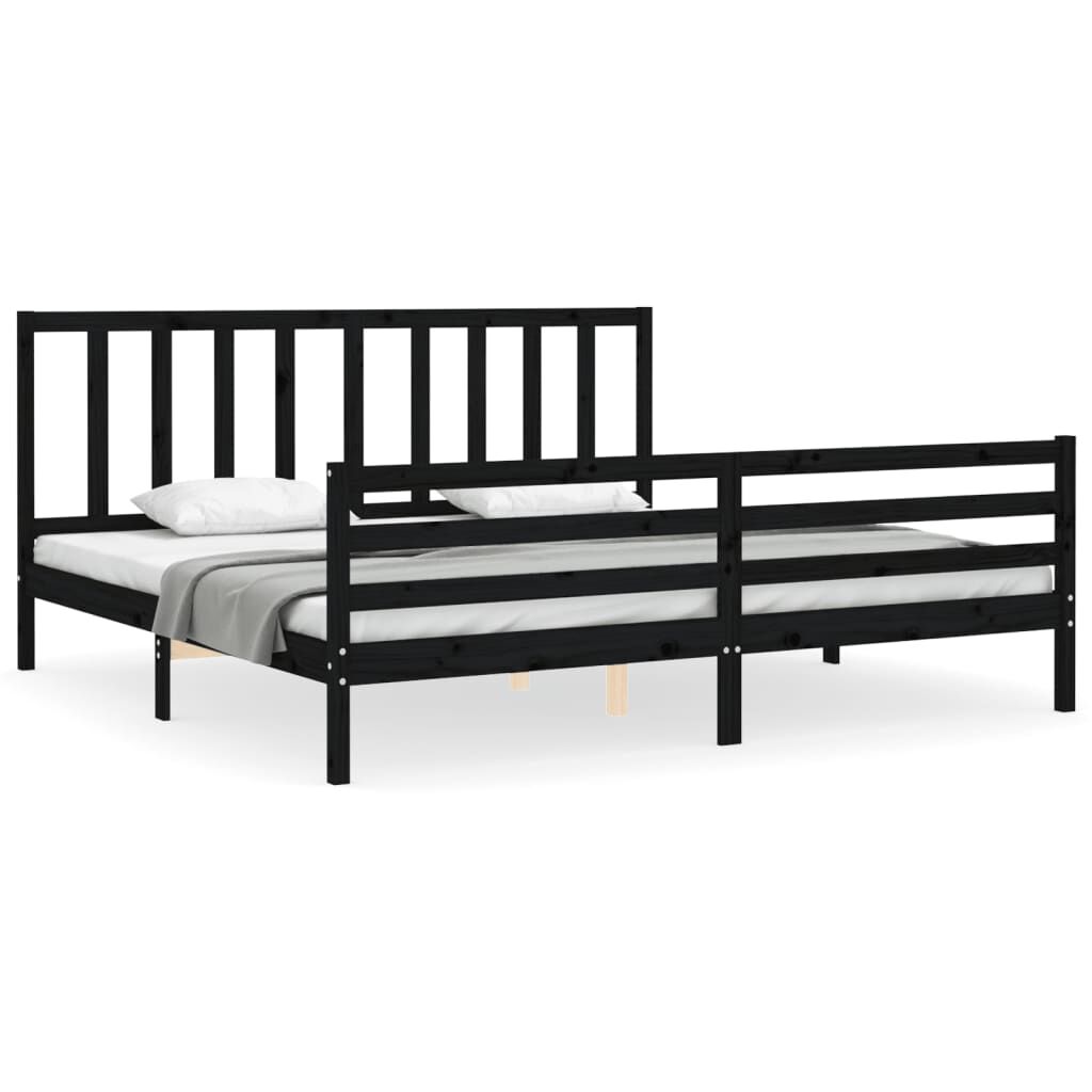 vidaXL Massivholzbett mit Kopfteil Schwarz 200x200 cm
