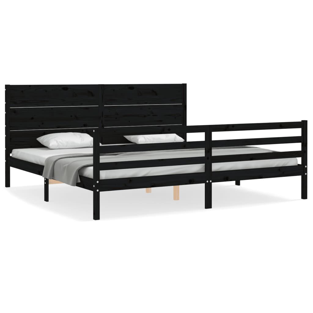 vidaXL Massivholzbett mit Kopfteil Schwarz 200x200 cm