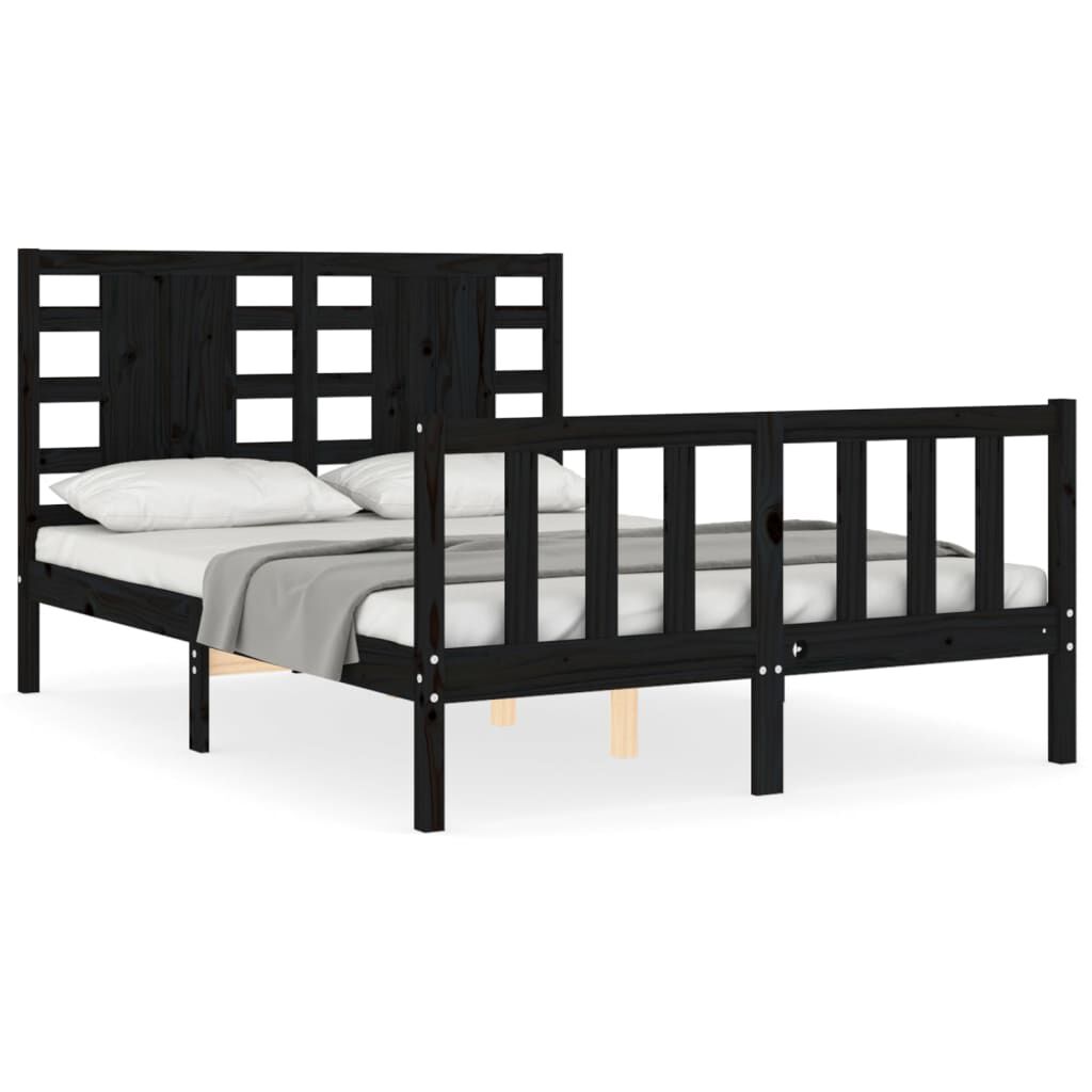 vidaXL Massivholzbett mit Kopfteil Schwarz