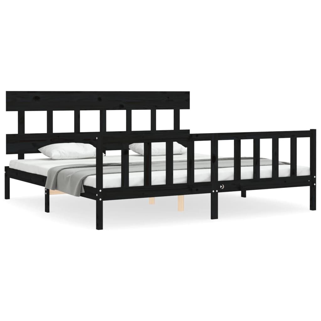 vidaXL Massivholzbett mit Kopfteil Schwarz