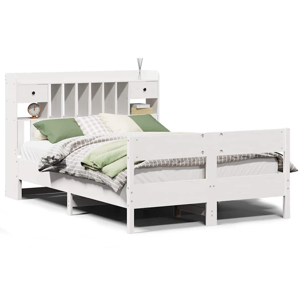 vidaXL Massivholzbett mit Regal ohne Matratze Weiß 140x200 cm Kiefer