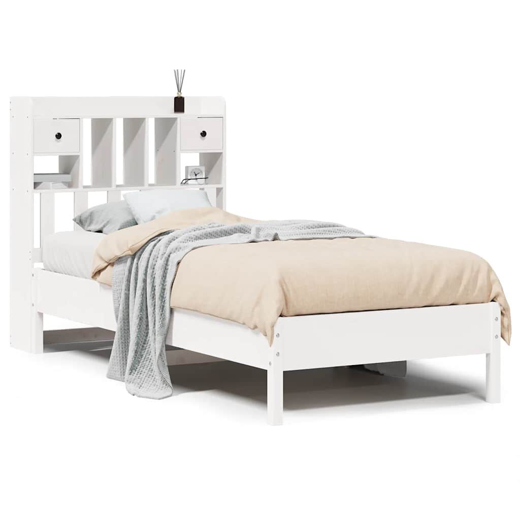vidaXL Massivholzbett mit Regal ohne Matratze Weiß 75x190 cm Kiefer