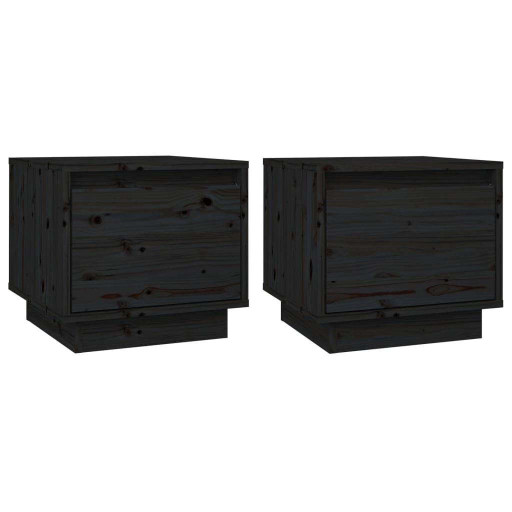 vidaXL Nachttische 2 Stk. Schwarz 35x34x32 cm Massivholz Kiefer