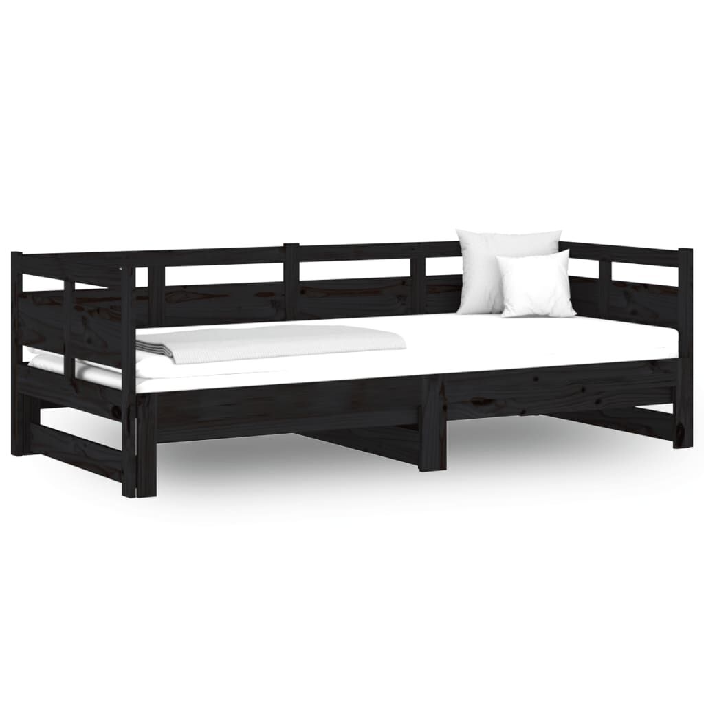 vidaXL Tagesbett Ausziehbar Schwarz Massivholz Kiefer 2x(80x200) cm