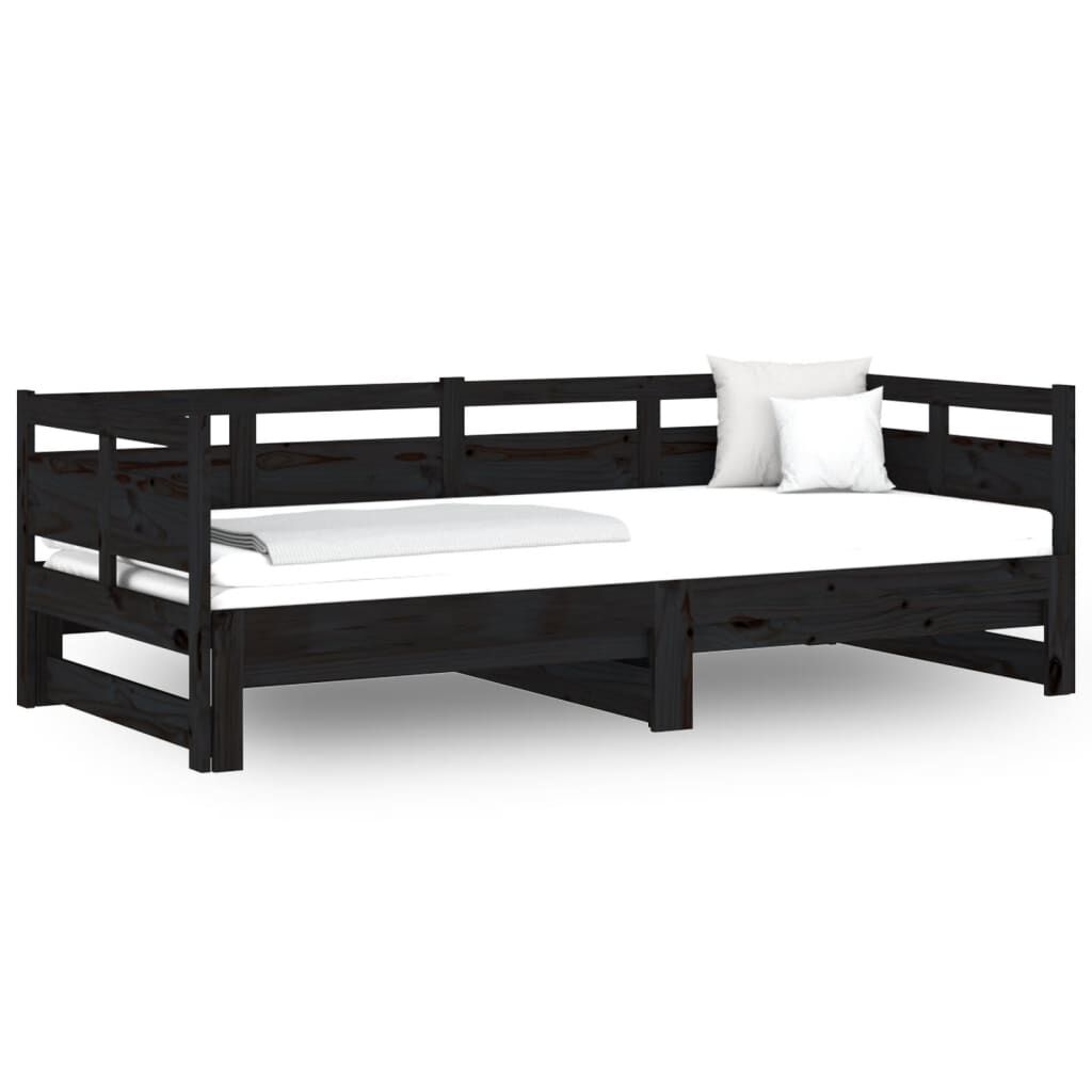 vidaXL Tagesbett Ausziehbar Schwarz Massivholz Kiefer 2x(90x190) cm