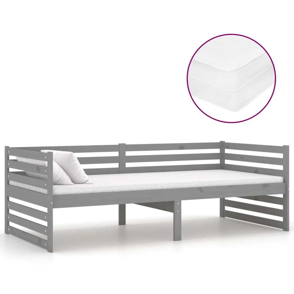 vidaXL Tagesbett mit Matratze 90x200 cm Grau Kiefer Massivholz