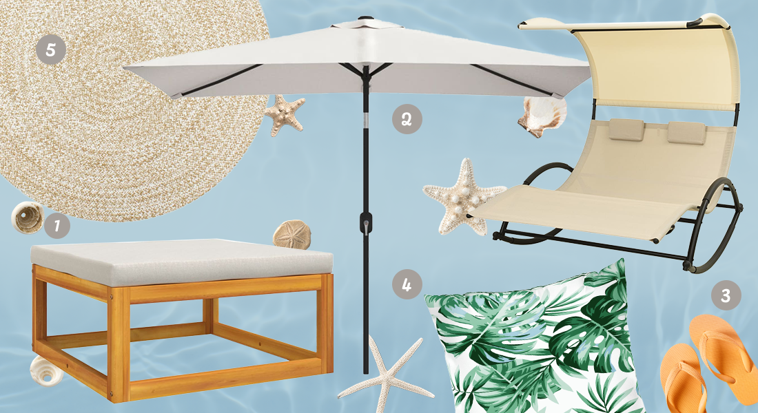 Um dich zu entspannen, brauchst du einen ruhigen Raum im Resort-Stil. Entscheide dich für bequeme Outdoor-Möbel, weiche Kissen und gemütliche Teppiche in sanftem Weiß, sandigem Beige und Ozeanblau. Verwende natürliche Materialien wie Rattan, Teakholz und witterungsbeständiges Korbgeflecht, um deinen Traum zu verwirklichen.