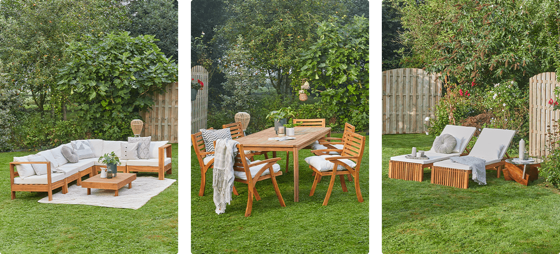 Gartenmöbel aus Holz eignen sich sowohl für moderne als auch für traditionelle Outdoor-Wohnbereiche. Holzmöbel schaffen ein Gleichgewicht zwischen der natürlichen Ausstrahlung des Außenbereichs und dem Komfort des Innenbereichs. Entscheide dich für Möbel aus Holz für deine Veranda, deinen Garten oder Balkon – du wirst jahrelang Freude daran haben.